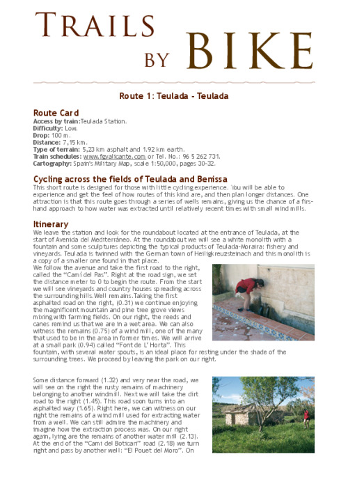 This short route is designed for those with little cycling experience. You will be able to experience and get the feel of how routes of this kind are, and then plan longer distances. One attraction is that this route goes through a series of wells remains, giving us the chance of a firs-hand approach to how water was extracted until relatively recent times with small wind mills.